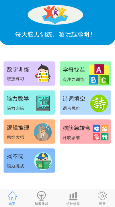 1、打开《脑洞挑战闯关》应用后,在首页选择一个测试脑力的小游戏模块,即可进入关卡开始挑战。