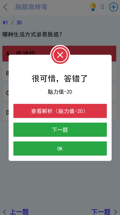 3、若回答错误,点击下一题,继续进行闯关,保持节奏不断,提升思维反应与解题能力。