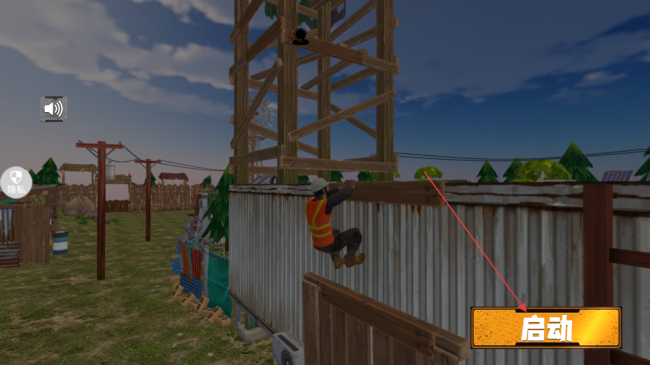1、面对围栏,可点击【启动】按钮,触发相关机制,帮助角色翻越围栏,继续探索场景。