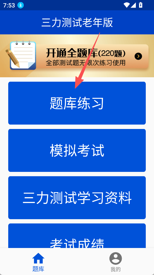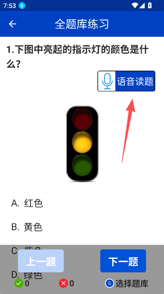1、打开“题库练习”,进入后可借助“语音读题”功能做题。