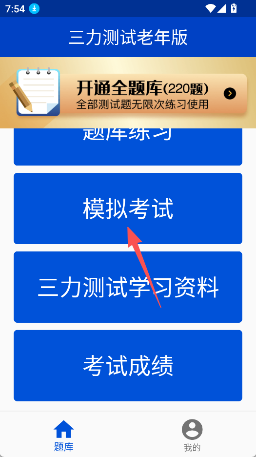 《三力测试老年版》有丰富功能,可进行题库练习,题目支持语音读题,方便老年用户。能开展模拟考试,模拟真实考试场景。还提供三力测试学习资料,助力学习。另外,可查看考试成绩,了解学习效果。软件开通全题库后,上百道测试题可无限次练习使用,助力老年用户备考三力测试。