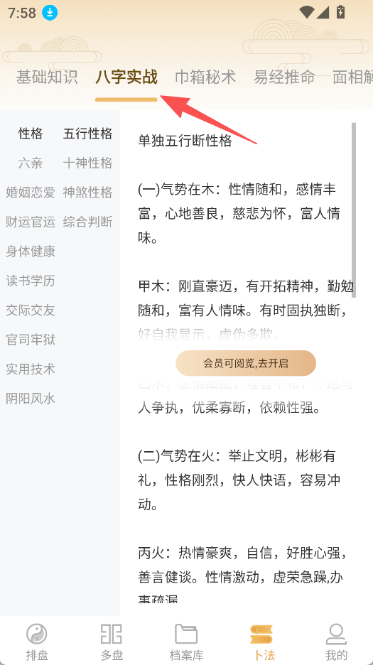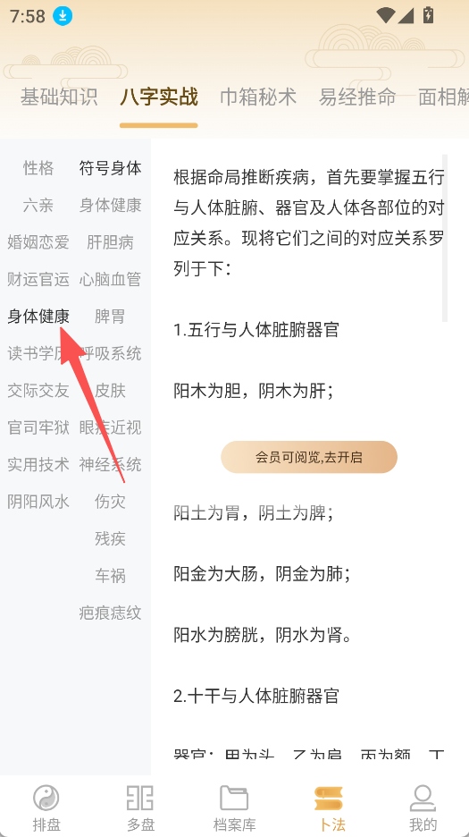 3、卜法内容详实,有八字实战等板块,包含性格、身体健康等多方面命理知识,知识覆盖面广。