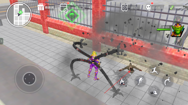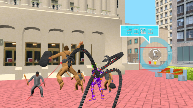1、反派角色设定:扮演肆虐城市的反派角色,通过触手能力与装备组合来破坏城市秩序,提供与传统英雄视角不同的独特体验感受。