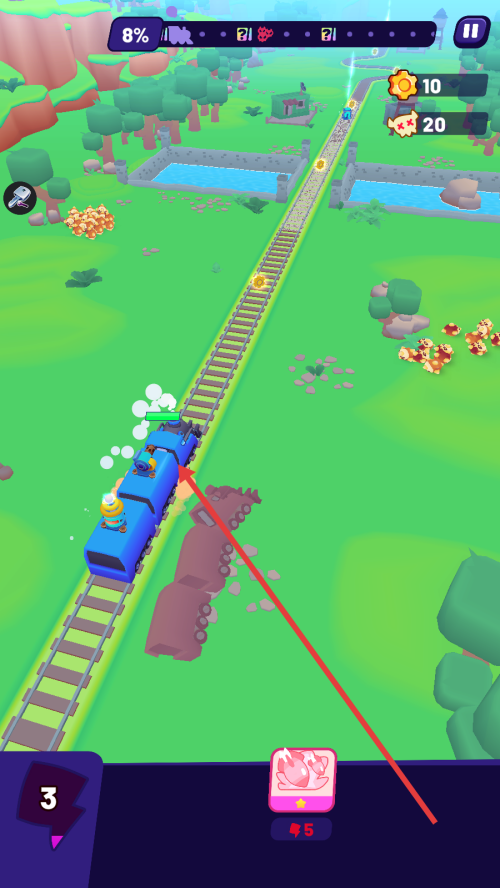 3、在弯道等复杂轨道段,注意操控火车的行驶方向,避免偏离轨道,同时继续收集道具和攻击目标。