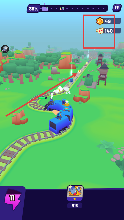 2、火车行驶过程中,遇到如动物等目标,可发起攻击,击败目标以获取分数等奖励,提升游戏进度。