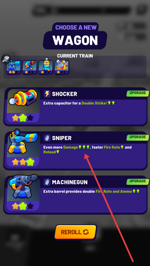 4、当出现【CHOOSE-A-NEW-WAGON】界面时,可根据需求选择新的车厢,如【SNIPER】等,增强火车的战斗或功能属性。