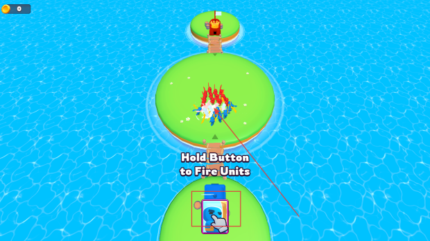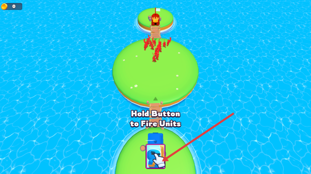 1、根据【Hold-Button-to-Fire-Units】提示,按住对应按钮,发射前往目标岛屿,开展战斗。