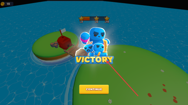 4、成功击败敌方后,界面会显示【VICTORY】,此时点击【CONTINUE】按钮,进入下一个游戏阶段。