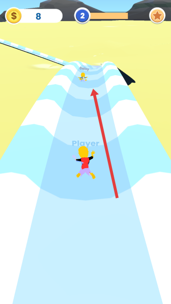 3、持续在滑道上滑行,保持速度,努力超越更多对手,让自己在滑道上的位置更靠前,向胜利迈进。