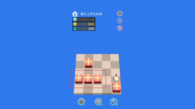4、继续操作,使场景中礼盒数量进一步变化,合理利用道具和选择,完成关卡目标,获得金币等奖励。
