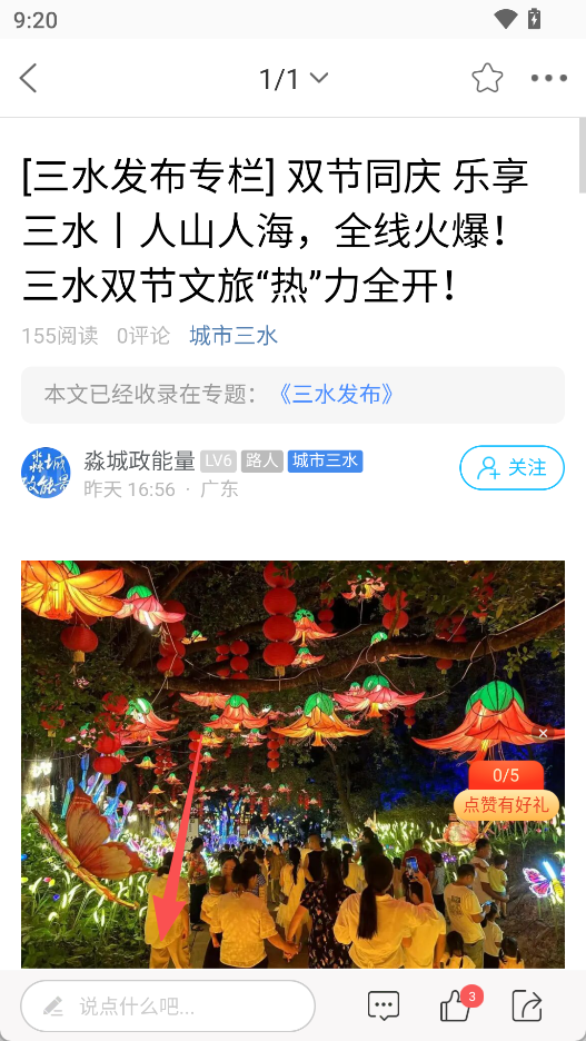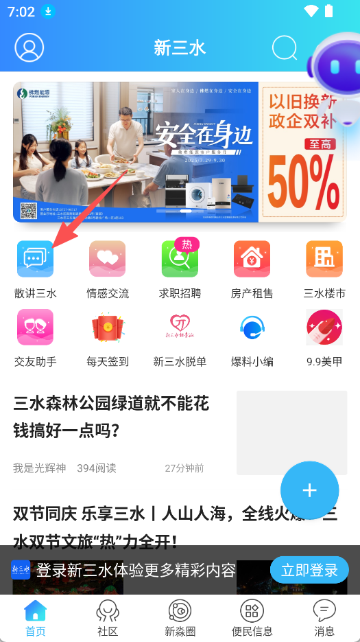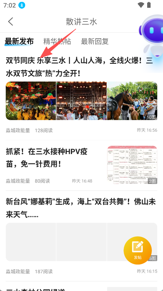 2、内容展示聚焦本地,散讲三水板块能呈现最新发布的各类本地帖子,如文旅、民生等相关内容。