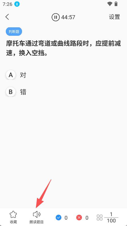 3、在答题页面,点击“朗读题目”,辅助完成答题。