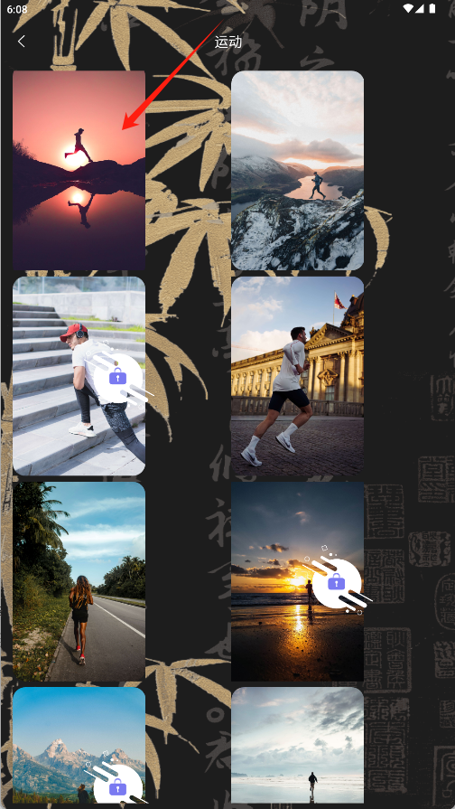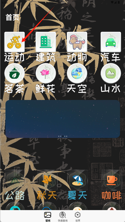 1、在首页点击“运动”分类图标进入运动主题壁纸页面。