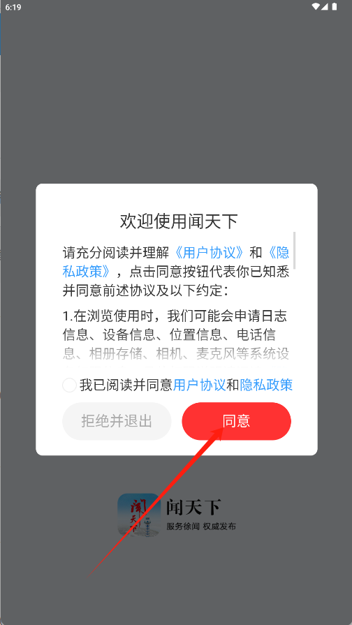 1、首次打开软件时,在用户协议弹窗中勾选同意选项,并点击“同意”按钮。