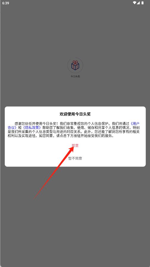1、首次打开软件时,在欢迎弹窗中阅读用户协议与隐私政策后,点击“同意”。