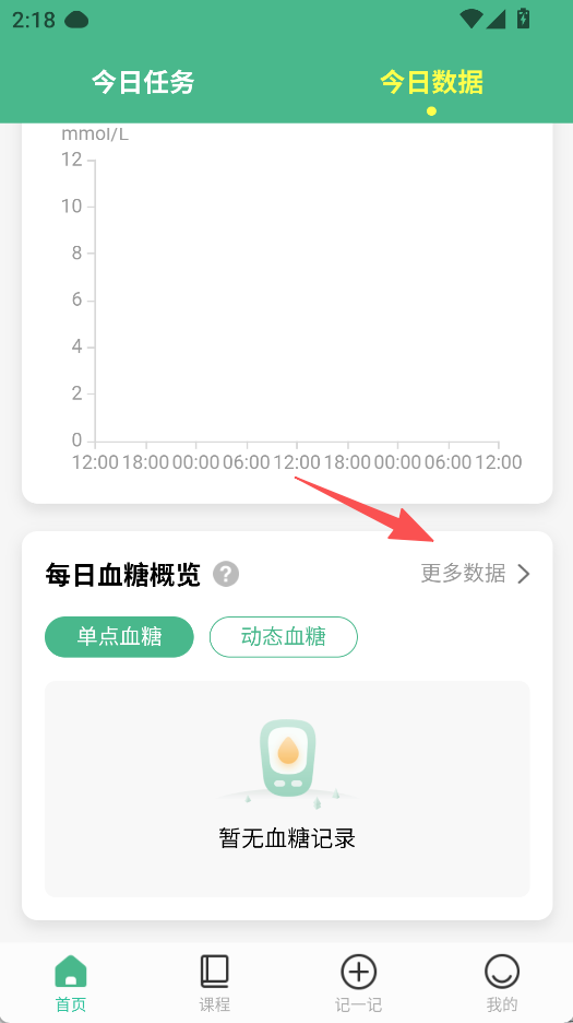 1、在首页点击每日血糖概览的更多数据。