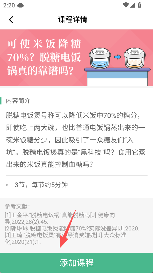 2、支持健康课程学习功能,进入课程页浏览详情,点击添加课程纳入学习列表。
