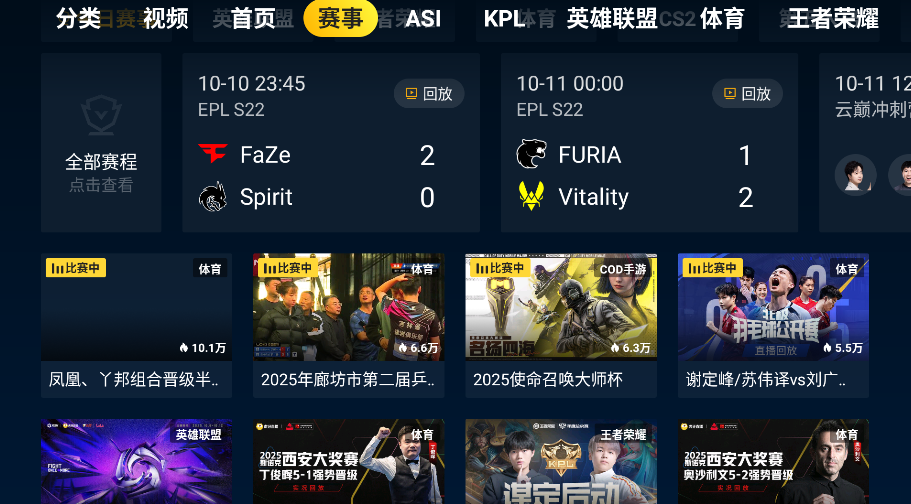 1、设有专属赛事专区,集中展示热门比赛与精彩片段,提升观看效率与内容聚合度。