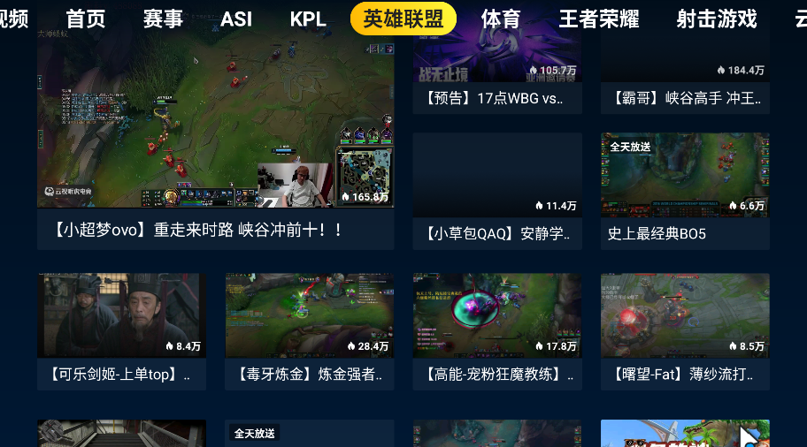 3、在首页或分类菜单中进入英雄联盟板块,可观看该项目的赛事直播、战队表现及精彩赛事回放内容。