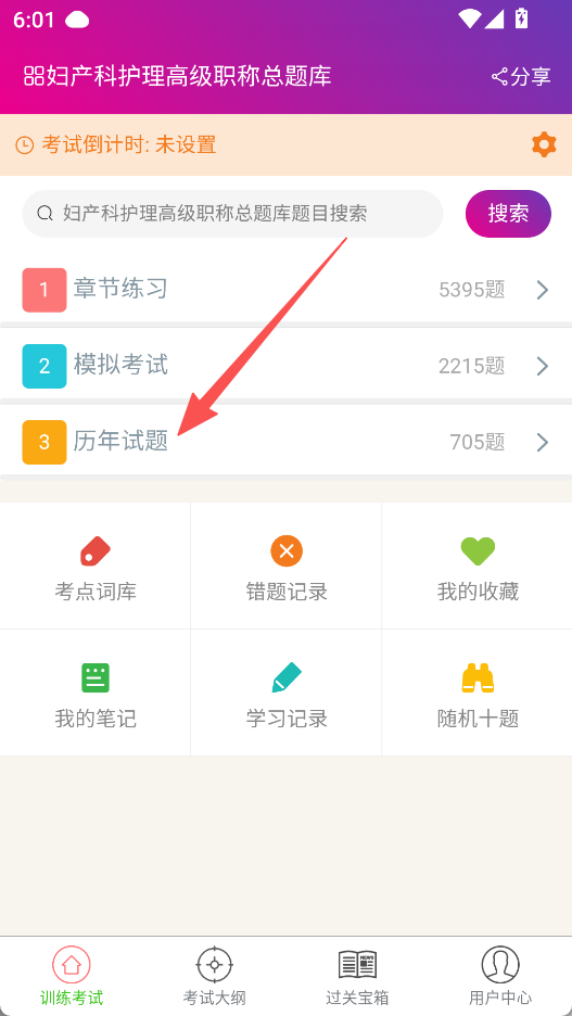 1、题库板块丰富,含章节练习、历年试题,历年试题收录多年份真题,满足不同备考阶段需求。