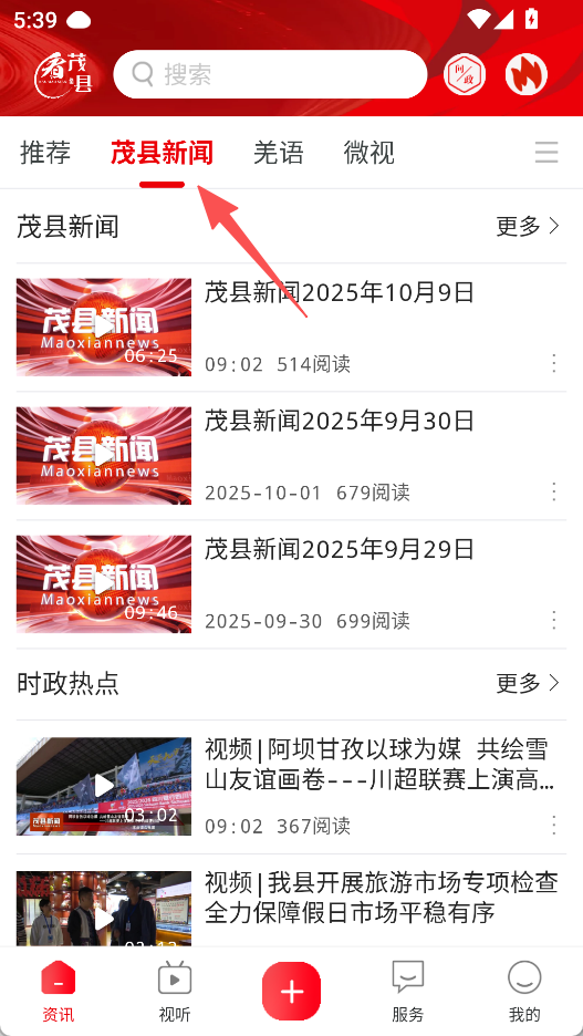 1、点击茂县新闻,浏览本地资讯。