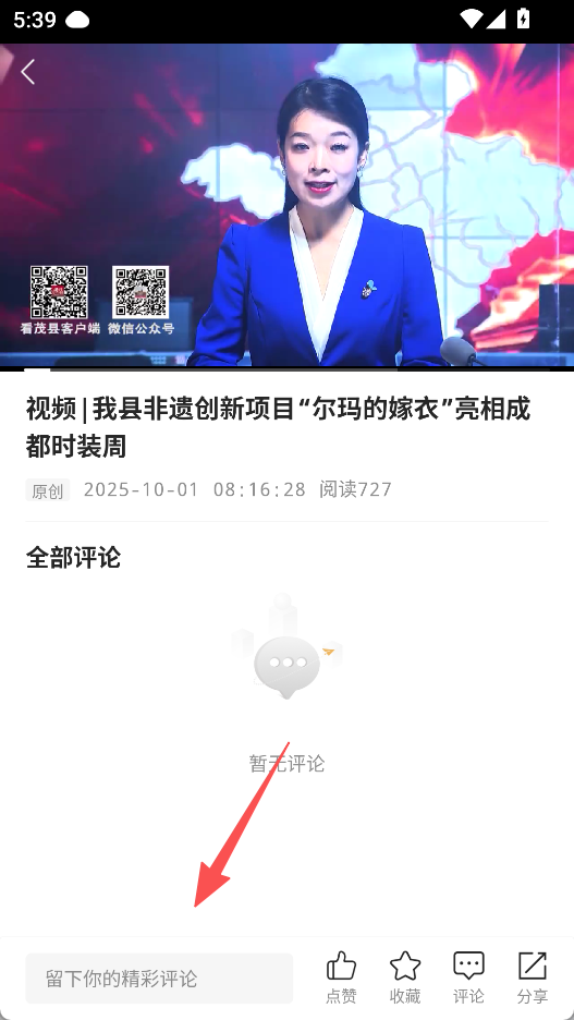 2、进入新闻详情页,可点赞、收藏、评论或分享。