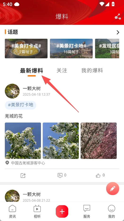 3、点击爆料,查看最新爆料或参与话题分享。