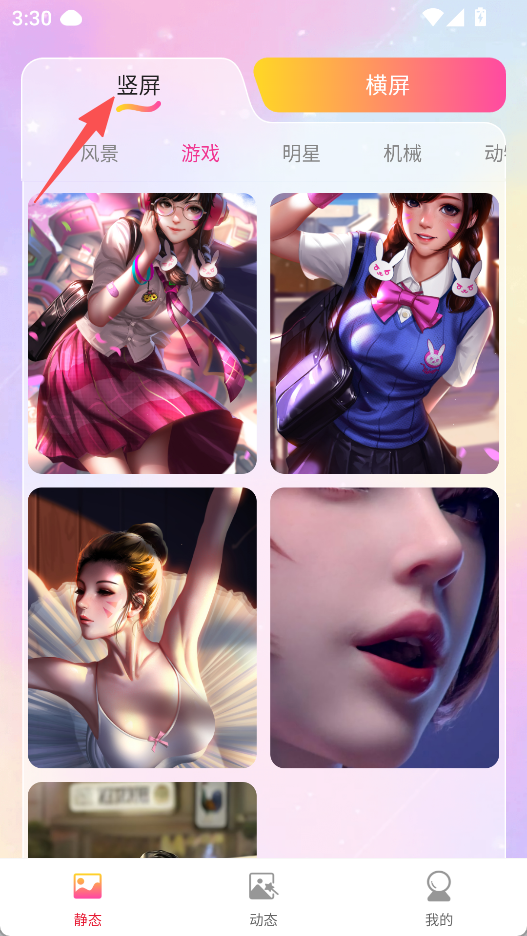 1、点击静态或动态标签,选择竖屏或横屏分类。