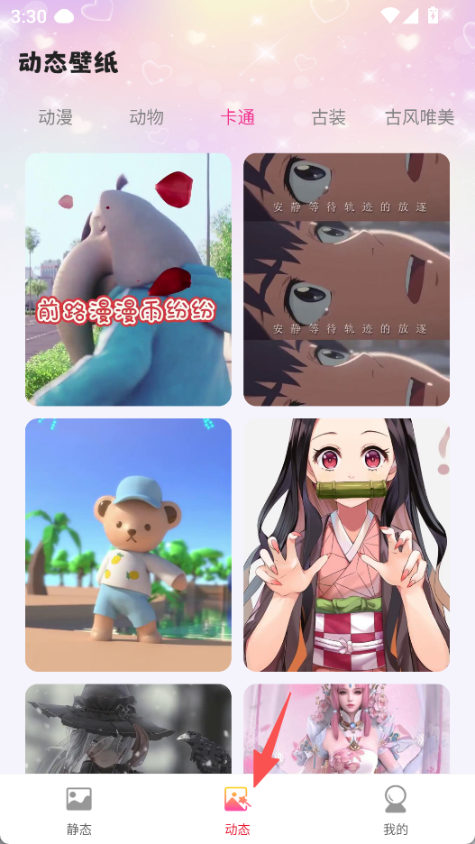 《推搪壁纸》提供多样壁纸资源,分静态、动态两类。静态壁纸有竖屏、横屏选项,覆盖风景、游戏等主题;动态壁纸含动漫、卡通等风格。壁纸画面精美,能满足设备桌面美化需求,操作简便,可快速挑选并设置喜欢的壁纸。