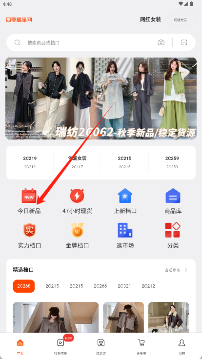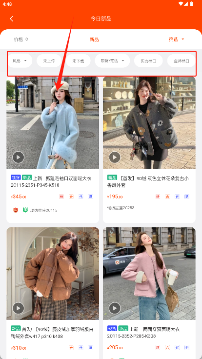 1、在首页进入商品列表页后点击“今日新品”筛选按钮。