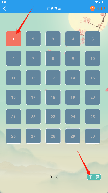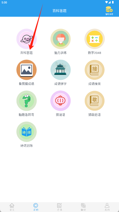 1、在首页点击“百科答题”功能图标,进入答题模式选择界面。