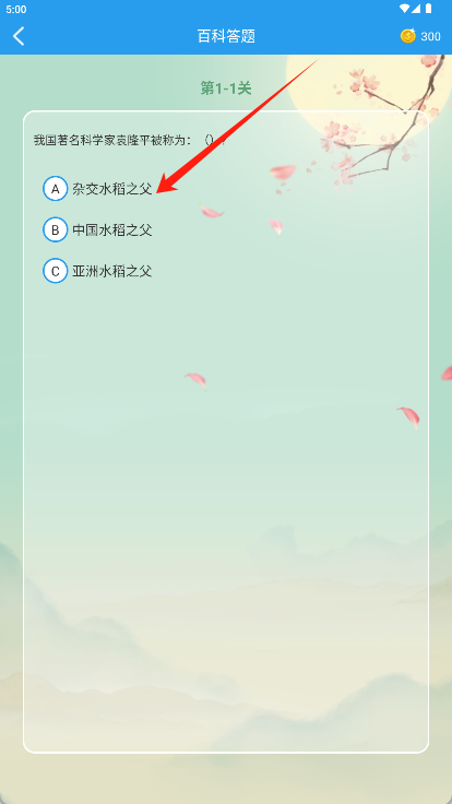 3、阅读题目和选项后,点击正确答案(如“A 杂交水稻之父”)完成本题作答。