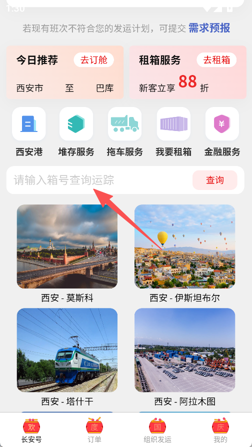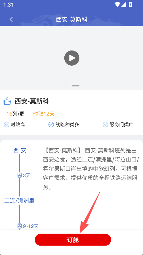 1、在线订舱,可查询开放的公共班列舱位,提交需求、确定班期并在线支付,完成订舱。