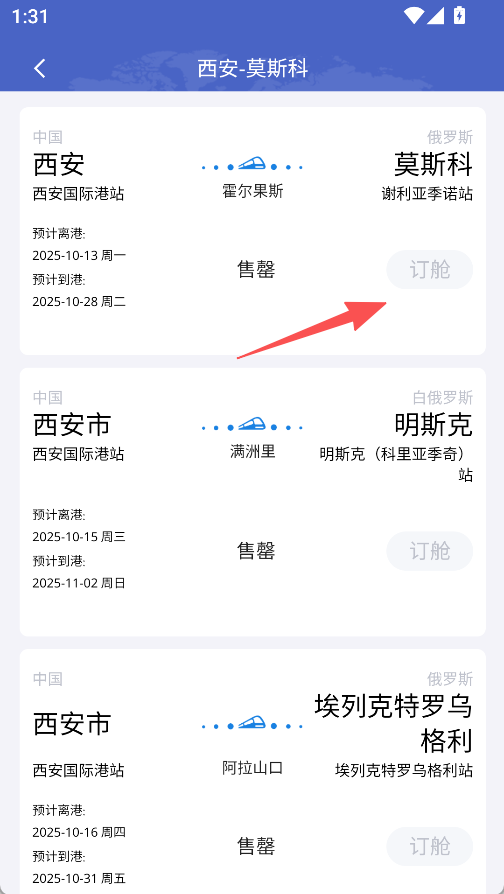 3、在班次列表中,选择可订舱的班次完成订舱。