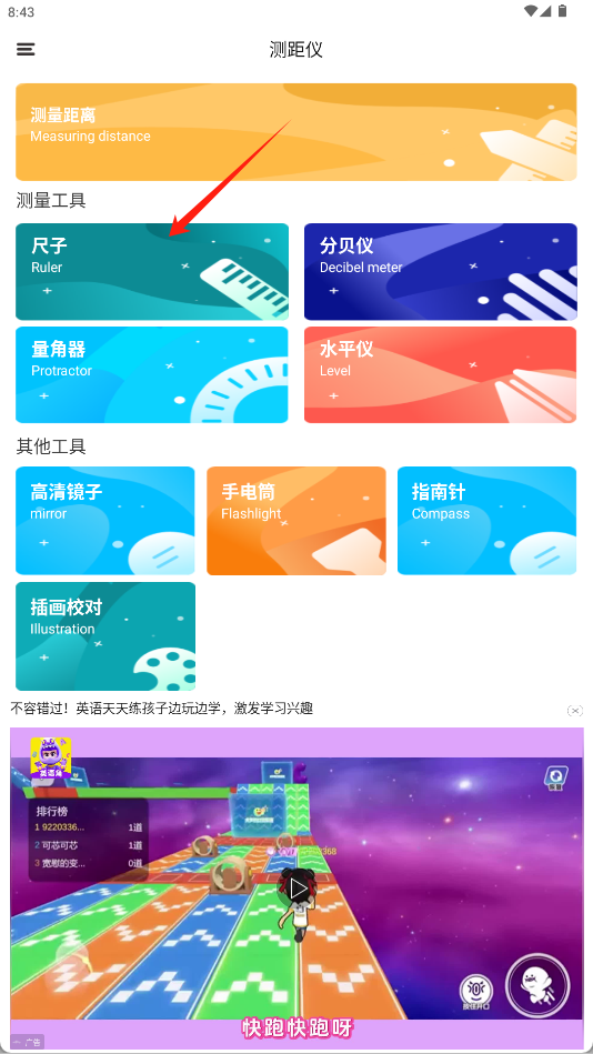 2、进入主界面后,在“测量工具”区域点击指向的“尺子”功能图标。