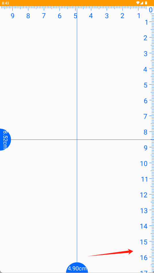 3、开启尺子功能,将屏幕十字准星对准物体边缘,界面即显示实时测量结果。