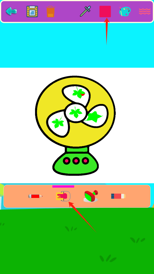 3、先点击选择上面的涂料颜色,再点击下方的填色方式,点击这个图案即可填色。