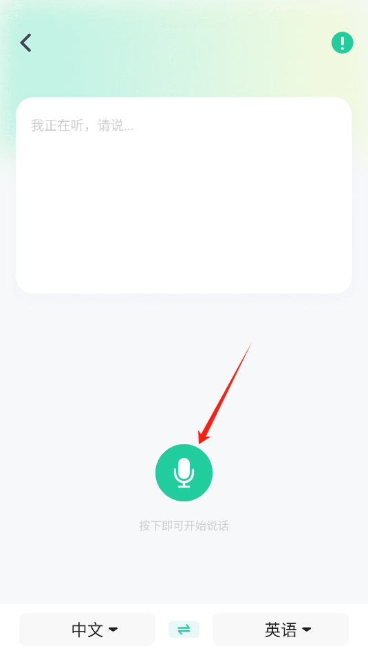 3、语音翻译,点击麦克风按钮说出中文,会自动翻译为英文文字。