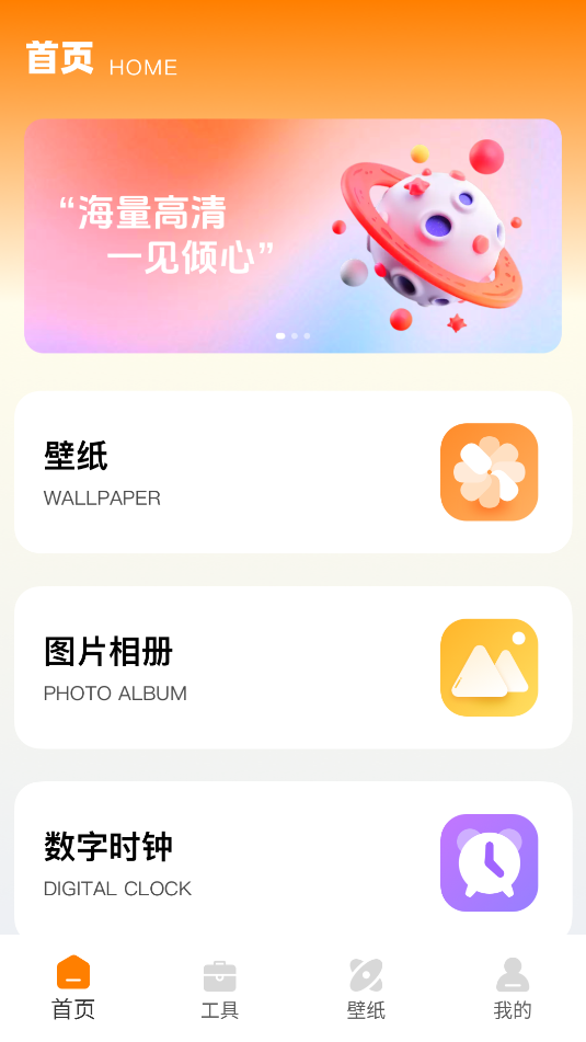 1、打开APP,在首页中点击壁纸进入。