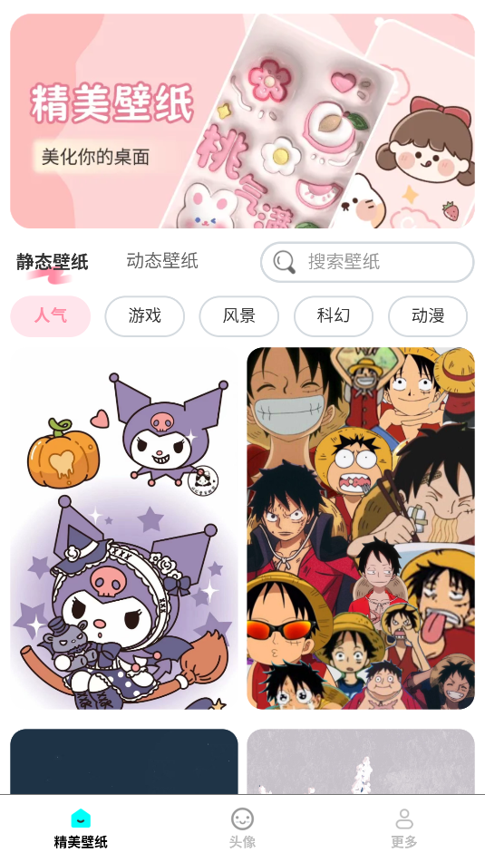 1、首页中,可以随意选择各种风格的壁纸,多种分类。