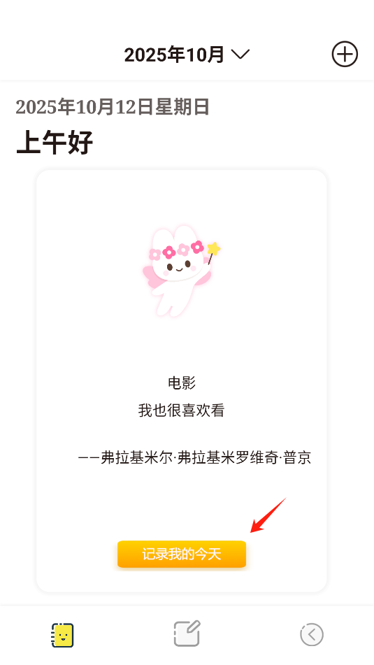 1、进入软件首页,可点击记录我的今天,开始写日记。