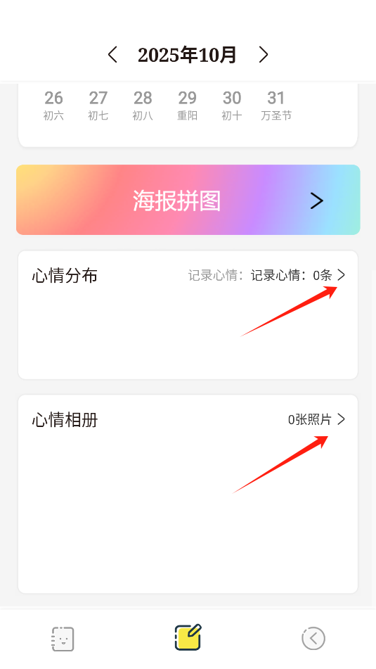 2、在第二页面,可以点击记录自己的心情和添加心情照片。