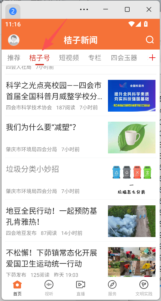 《桔子新闻》设置推荐、桔子号等栏目,可浏览科普、环保等各类新闻,点击文章能查看详情并订阅相关内容。同时有文明实践板块,展示民众微心愿,还有志愿团体信息,方便了解本地文明活动与志愿资源,助力获取新闻和参与文明实践。
