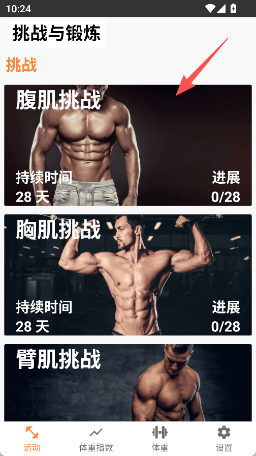 1、打开首页点击“腹肌挑战”。