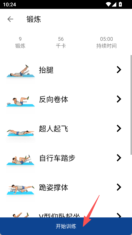 3、在锻炼页面,点击下方“开始训练”。