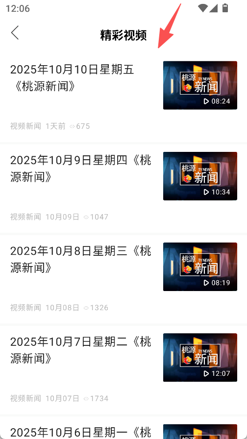 2、在精彩视频页面,选择要观看的《桃源新闻》。