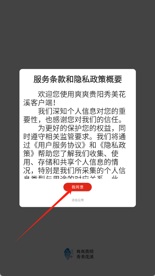 1、首次打开软件,在服务条款弹窗中,点击“我同意”按钮,完成授权。