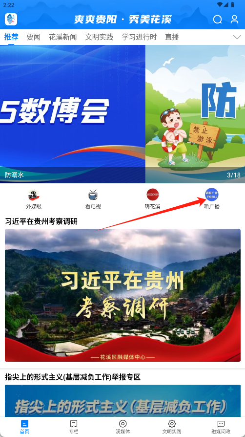 2、集成地方广播收听模块,可实时收听贵阳及花溪本地电台节目,及时了解当地新闻动态与文化资讯。