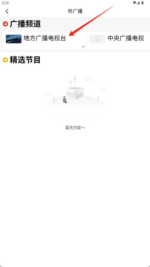 3、在听广播页面,可选择“地方广播电视台”或“中央广播电视”即可观看收听内容。