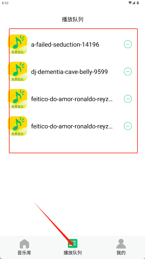 3、点击底部导航栏的“播放队列”查看已添加的歌曲列表进行统一播放管理。